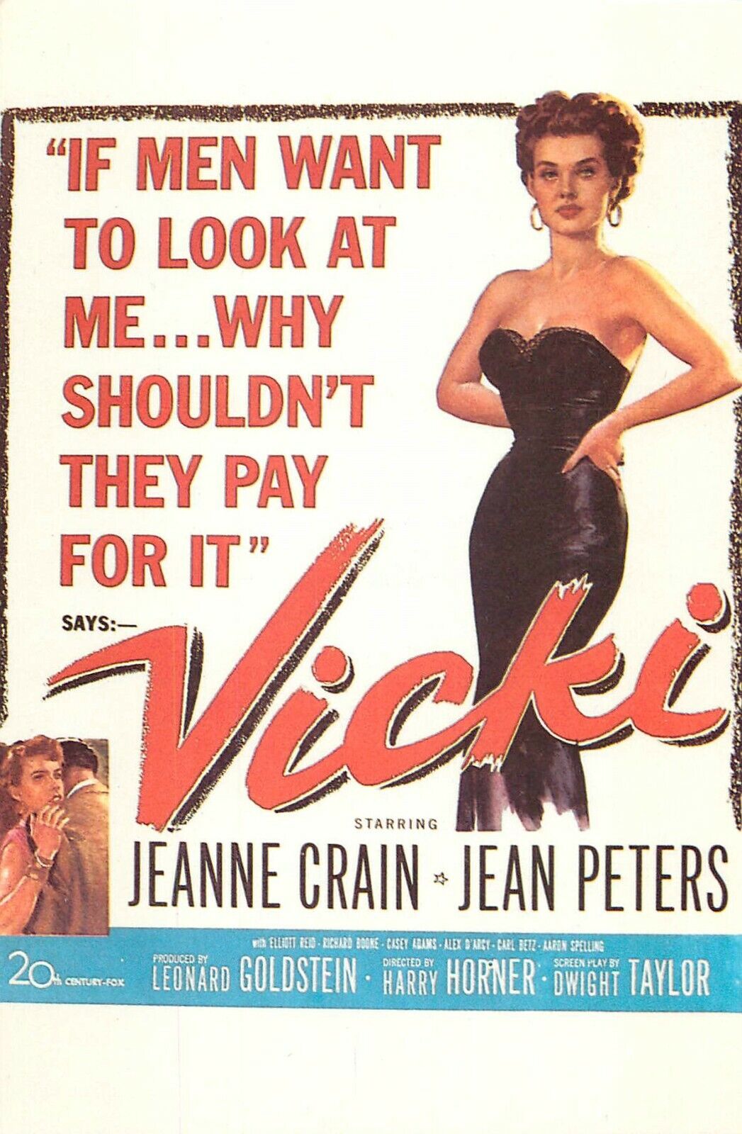 Directed by Harry Horner and based on the novel I Wake Up Screaming, written by Steve Fisher. The film features Jeanne Crain, Jean Peters, Elliott Reid and Richard Boone. Vicki is a remake of the 1941 film I Wake Up Screaming starring Betty Grable, Victor Mature, and Carole Landis .